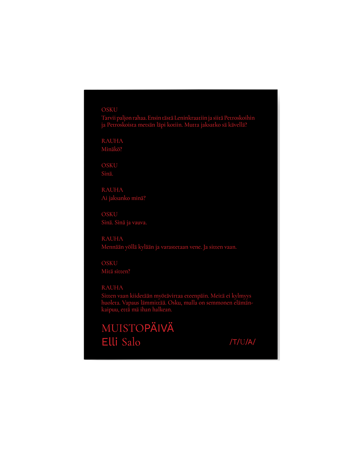Antologian ovat toimittaneet ja kustantaneet yhteistyössä Teatterin Uusi Alkukirjasto ja R.E.A.D. Festival.